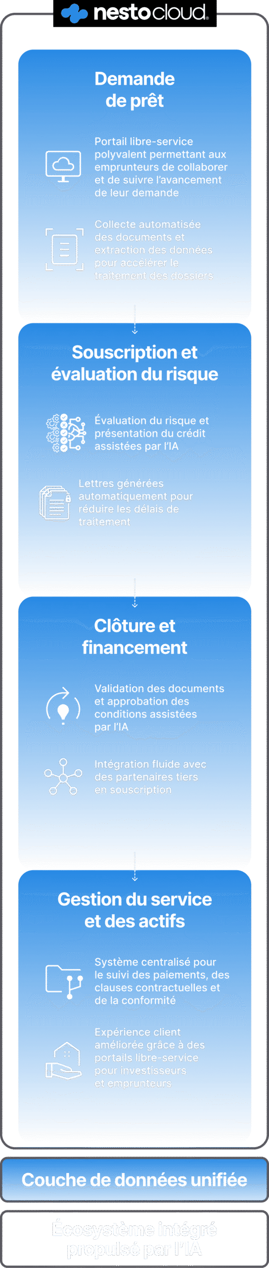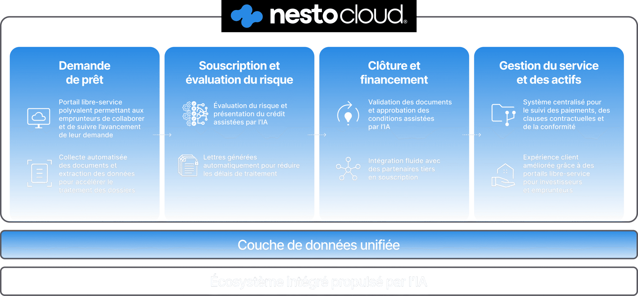 Conçu pour les institutions financières, les coopératives de crédit et l’immobilier commercial, Nesto Cloud simplifie les processus de prêt complexes grâce à l'automatisation intelligente, à la conformité en temps réel et à des intégrations transparentes.